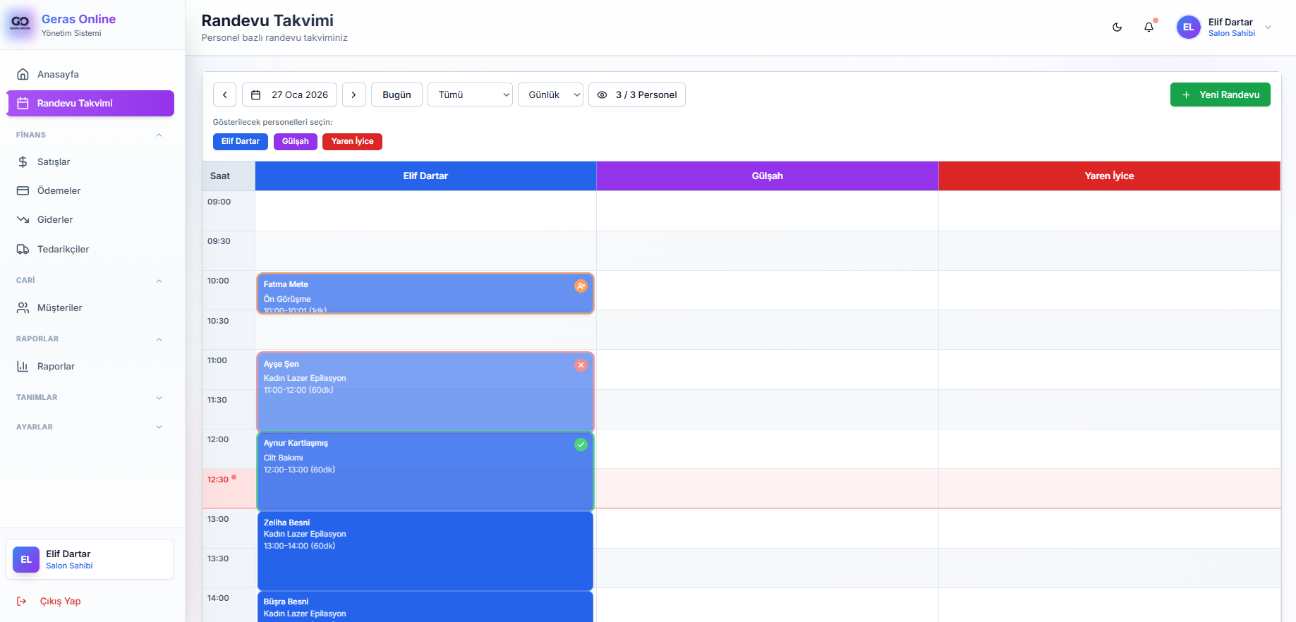 Modern randevu yönetimi, satış takibi ve raporlama sistemi ile işlerinizi kolaylaştırın, müşteri memnuniyetini artırın. Tek tıkla tüm salonunuzu yönetin.